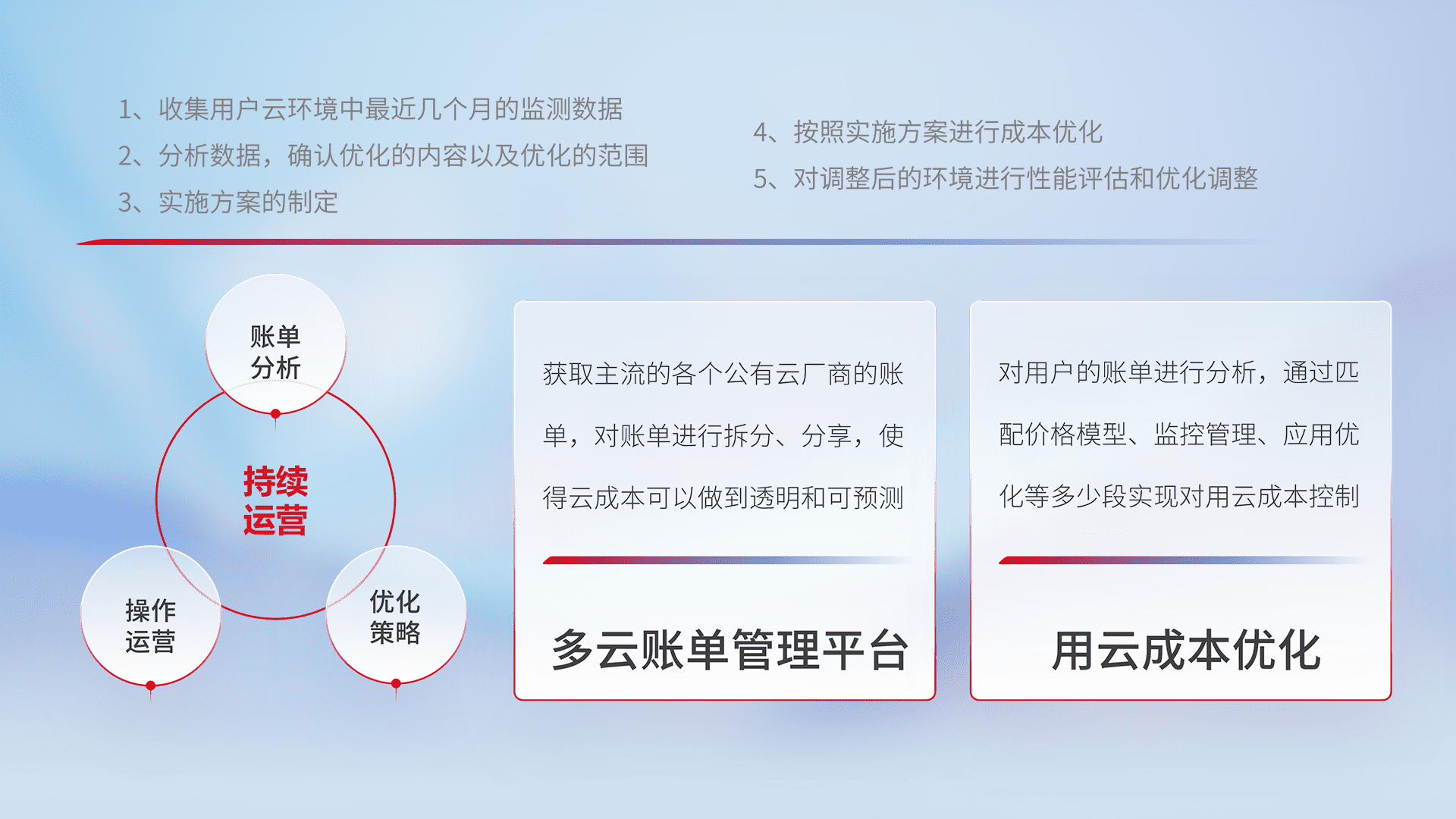 监控业务系统资源开销,,,对资源的消耗精确计量,,实现费用的透明化管理,,不断提升资源使用率,,调整资源购买方式,,,,降低资源费用成本,,,用云成本可预测、、、、用云费用可优化,,,,云资源配额有据可依。。